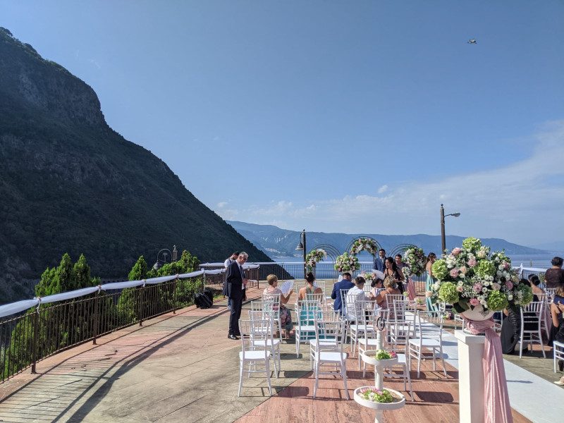 Situato in un contesto affascinante, tra splendidi giardini ed un gigantesco totem collocato di fianco al teatro scenico, la struttura offre ai visitatori una perfetta location all’aria aperta per la celebrazione di matrimoni/unioni civili.